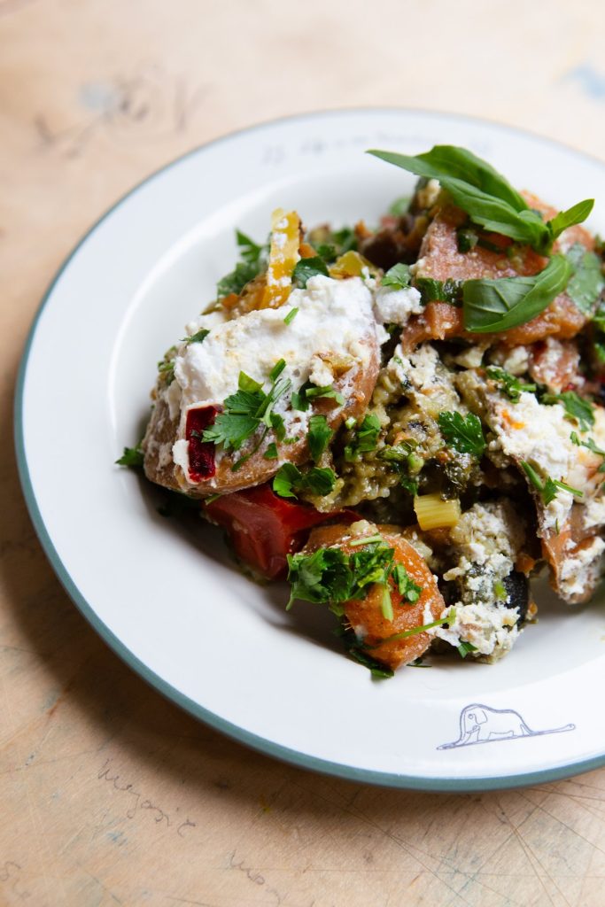 kecskesajtos töltött batata