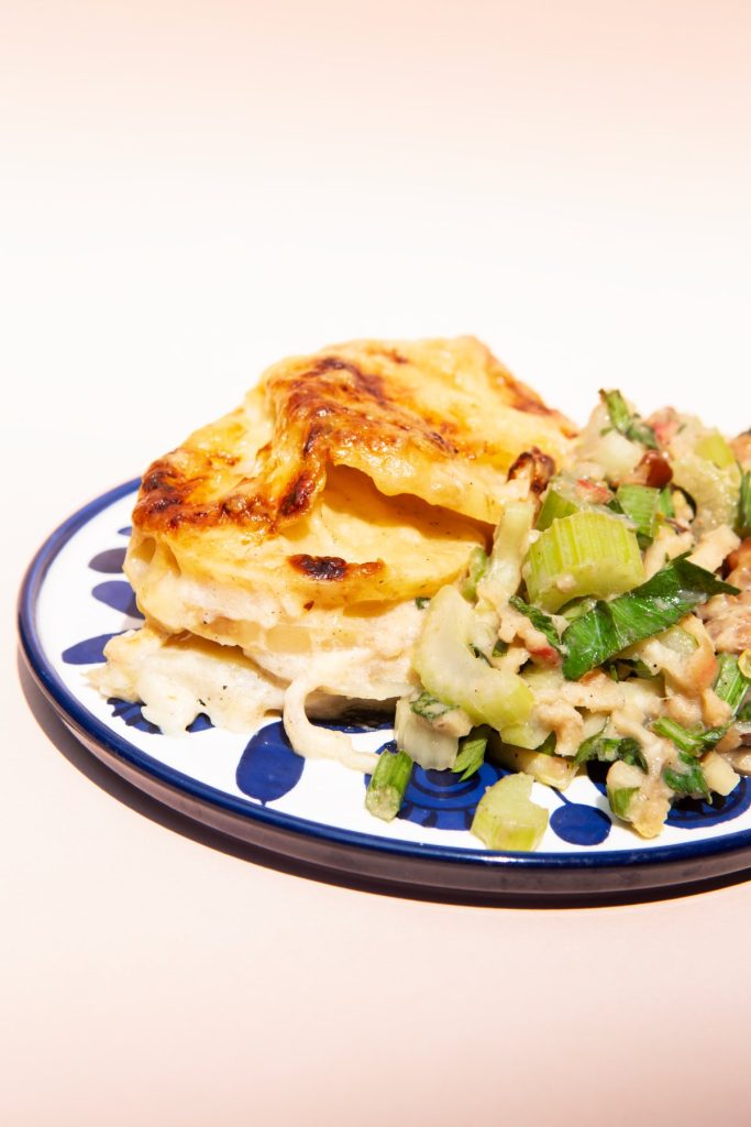egyik kedvenc krumpliételünk, méghozzá: gőzpárolós sütőnkben vajon puhára főzünk szeletelt francia sárga krumplit, majd leöntjük egy tejszínes sajtmártással, és a tetejére ementáli sajtot sütünk. hozzá készítünk diós zelleres almás alma(ecet)es salátát, ugye hogy milyen izgalmas egészséges (fehérje- és rozsban gazdag) friss kreáció?